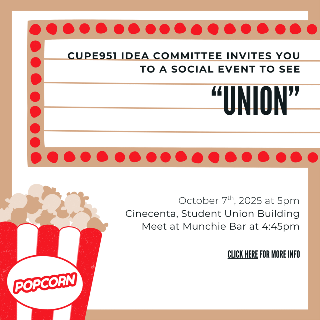 This viewing is being sponsored by our friends at CUPE 4163. We invite anyone who wants to join us to come along to socialize, meet other folks from the union, and watch this film. We will meet at about 4:40 just outside the doors to Cinecenta, on the bus loop side.We hope to see you there!